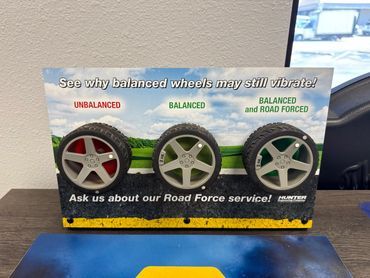 One of big upgrades with the new shop is a top-of-the-line Hunter Alignment machine. We sell tires too. We always advise a fresh wheel alignment after new tires or suspension repairs.